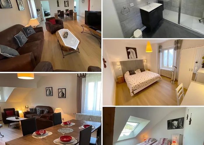 Wraz z udogodnieniami do samodzielnego przygotowywania posiłków, takimi jak kuchnią, obiekt zapewnia gościom miejsce do jedzenia. Wyposażenie obejmuje również urządzenie do parzenia kawy/herbaty. Obiekt noclegowy położony jest o rzut beretem od Brasserie De L 'Hôtel De Ville, gdzie serwowane są dania kuchni europejskiej.